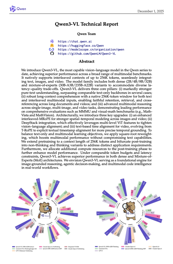 논문 리뷰 – Qwen3-VL Technical Report By MasterDecember 9, 2025December 9, 2025Data Science, Paper Review Qwen3-VL 논문을 Video Understanding 관점에서 정리한 자료입니다. 혹시 피드백이나 문제점이 있으면 알려주시면 감사하겠습니다! – 논문: https://arxiv.org/pdf/2511.21631 Notion: [link] qwen3-vl-reportDownload